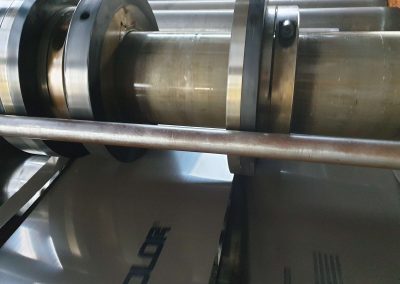 Linijski razrez pločevine izvajamo na rezalni liniji, ki je sestavljena iz odvijalnega stroja, ravnalnih valjev, krožne rezalne naprave in navijalnega stroja. Razrez opravimo kvalitetno in hitro.